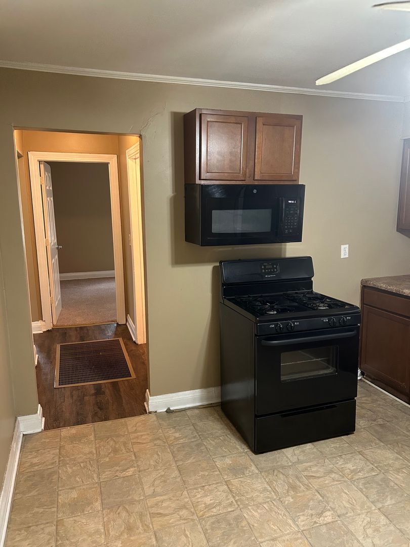 Great location near the expressway, large yard. Remodeled kitchen with range, microwave, dishwasher, refrigerator. Updated wood cabinetry, remodeled bath, replacement windows, freshly painted. Washer dryer hook ups.