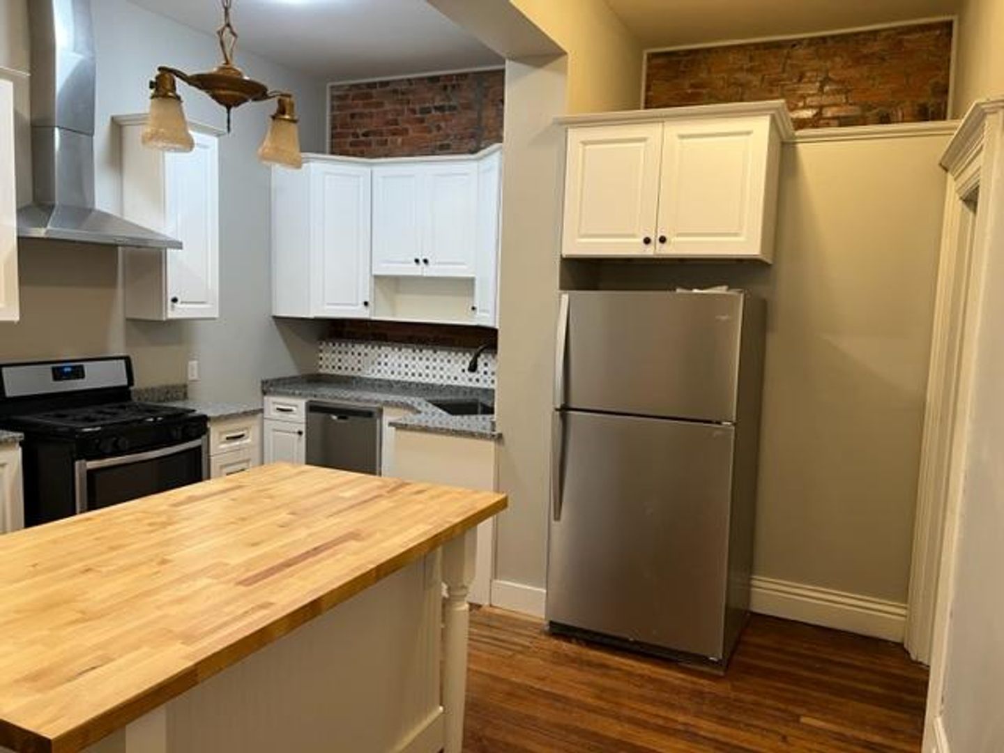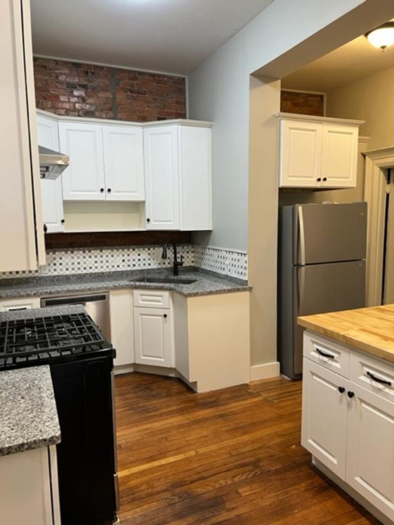 This newly renovated unit includes hardwood floors, exposed brick,
